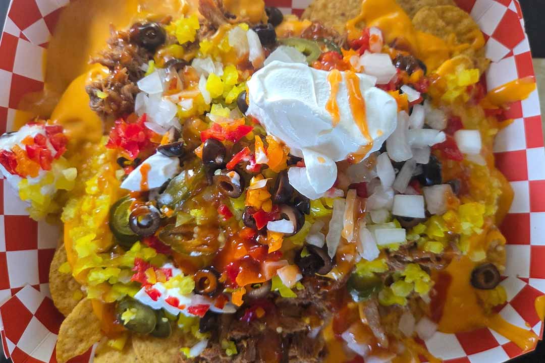Hot dogs and nachos are the stars of the show, and Moto Munchies puts a creative spin on both. Hot dog options run from the Classic Cruiser and Wild Rider all the way up to the loaded Chopper Dog, Road King, BurnOut, and Off-Road Special — each with its own personality and toppings. On the nacho side, choose from the Easy Rider, Hot Rod, Speedway Special, or go all-in with the fully loaded Pit Crew nachos, piled high with cheese, jalapeños, pulled meat, olives, sour cream, onions, and more. Feeding the whole crew? The Gearhead Pack — a variety family pack with four drinks — is an unbeatable deal at $20.