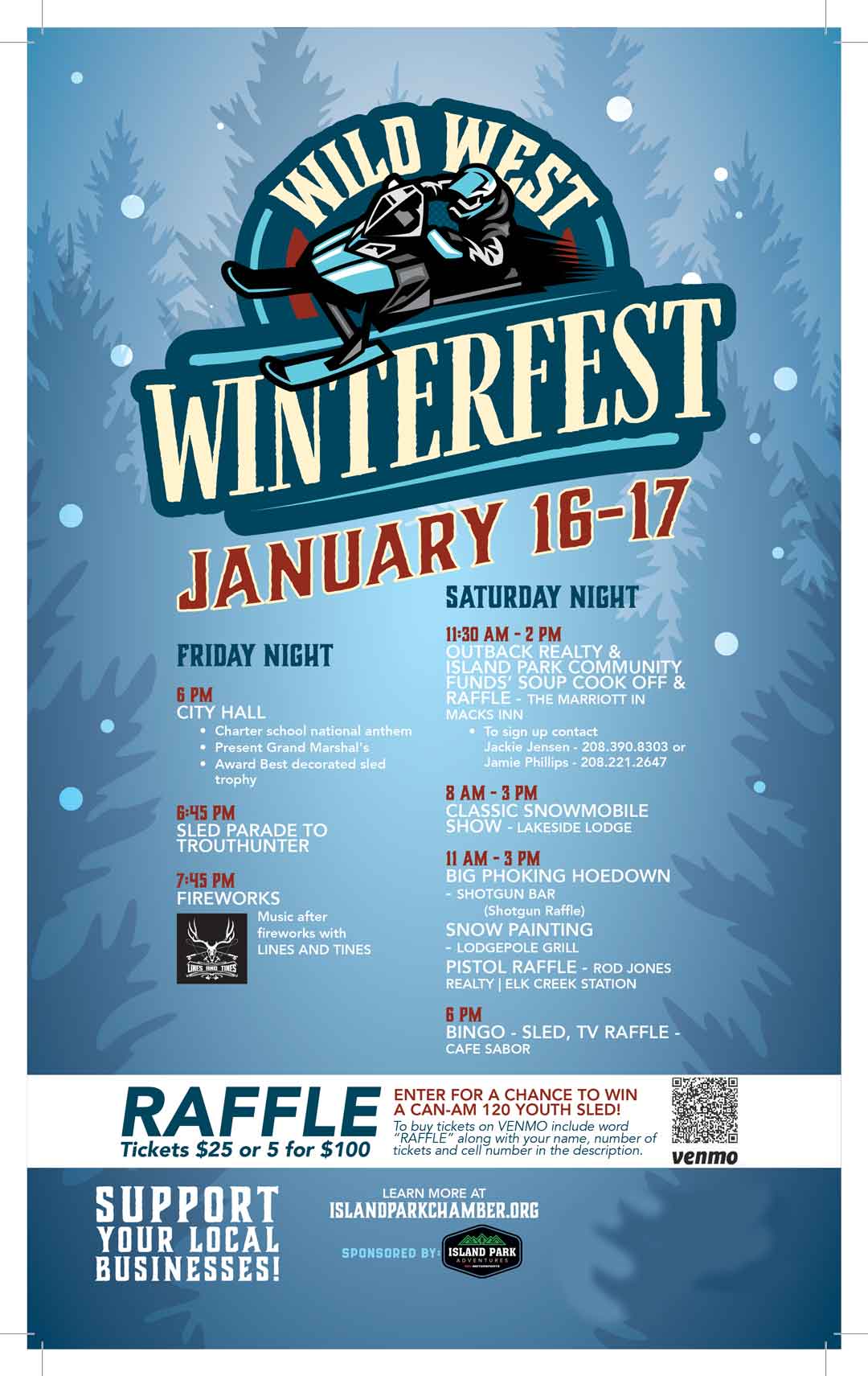 Local businesses, this is a fantastic opportunity to get involved! If you'd like to host an event or contribute to the Winterfest experience, please reach out to the Island Park Chamber of Commerce. We welcome ideas that bring our community together and make Winterfest memorable.